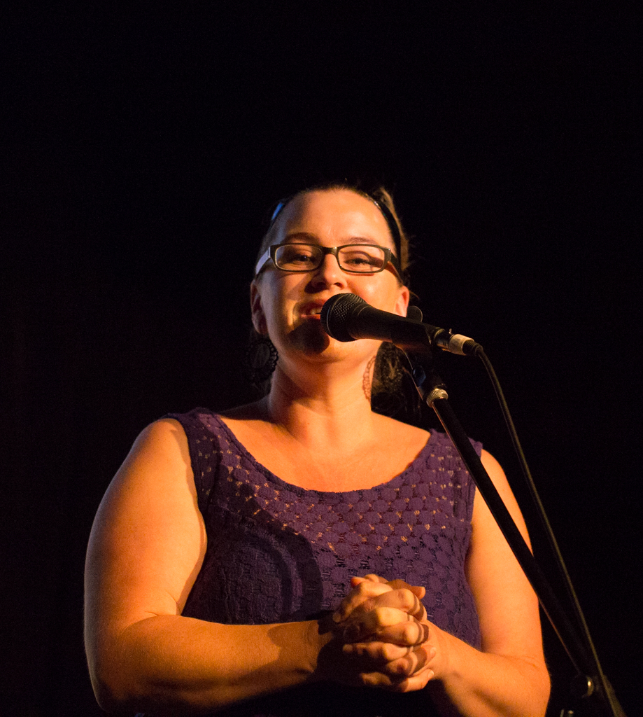 Quinton with his new folding/travel bass and below Renee singing up an acapella storm